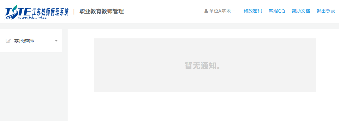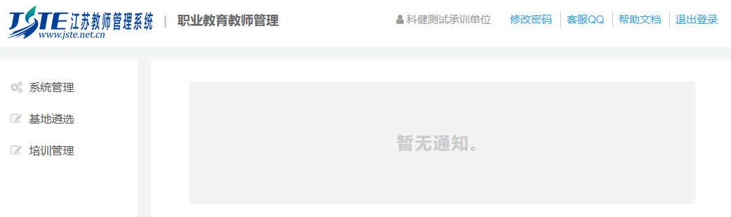 培训基地管理员登录“职业教育教师管理系统”后,即进入职业教育教师管理系统主界面。
