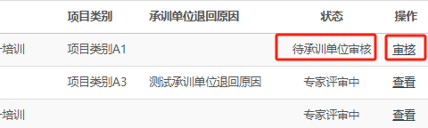 3)承训单位审核通过:审核通过,可进入下一步专家评审